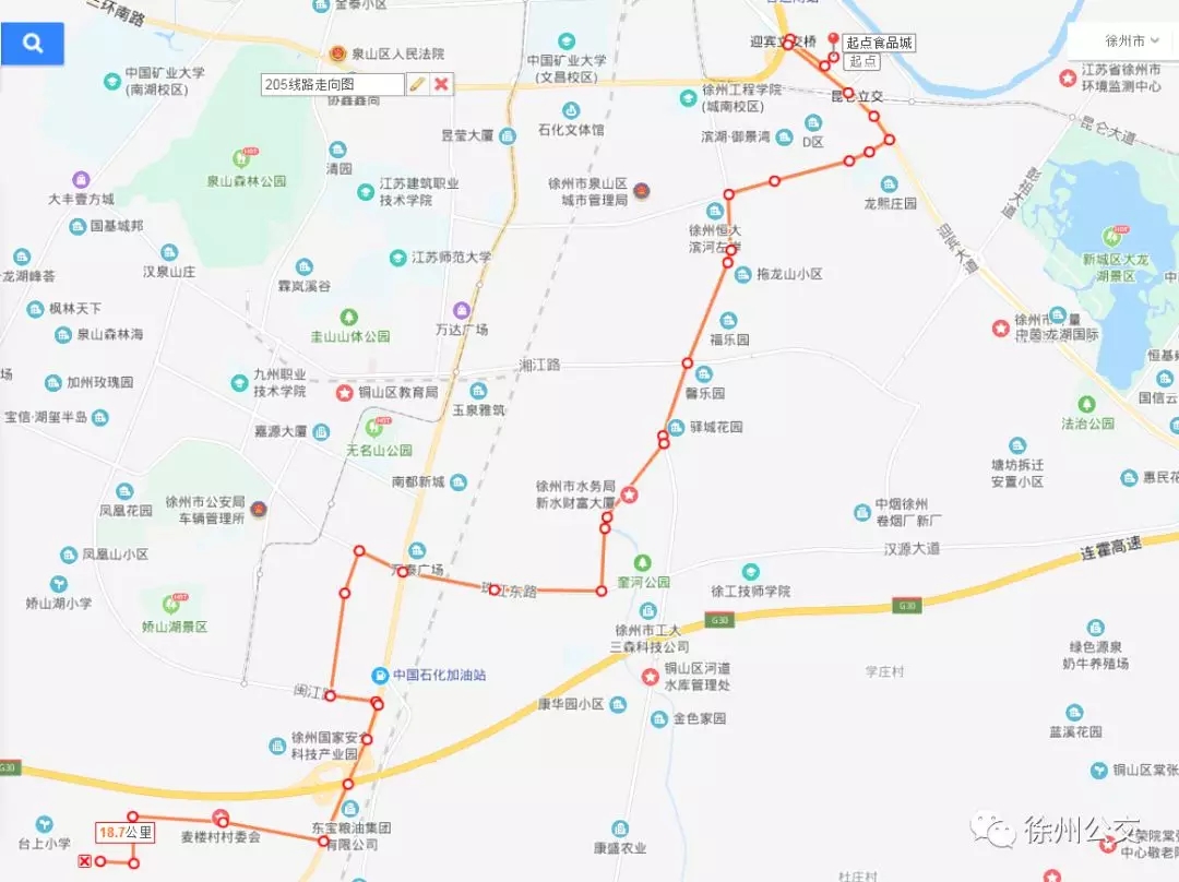 為滿足廣大市民出行需求,進(jìn)一步擴(kuò)大徐州高新區(qū)和市區(qū)的交通線網(wǎng),促進(jìn)區(qū)域交通和諧發(fā)展,為更多的市民提供便捷的城市客運(yùn)服務(wù),徐州公交開(kāi)通了205路線,并于12月18日上午8:30分開(kāi)始試運(yùn)行。具體線路走向及??空军c(diǎn)如下: