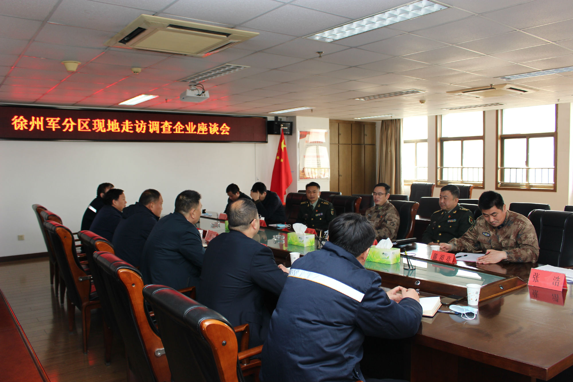 2月22日上午,徐州市軍分區(qū)政委李中雙,泉山區(qū)政府副區(qū)長王龍,泉山區(qū)人武部部長趙超,政委杜法祥,參謀黃祖亮、參謀張學(xué)儒一行到集團(tuán)走訪座談。集團(tuán)總經(jīng)理馮陸陸,常務(wù)副總經(jīng)理蔣成彪,副總經(jīng)理丁玉華,紀(jì)委書記、工會(huì)主席袁夫松參加會(huì)議。