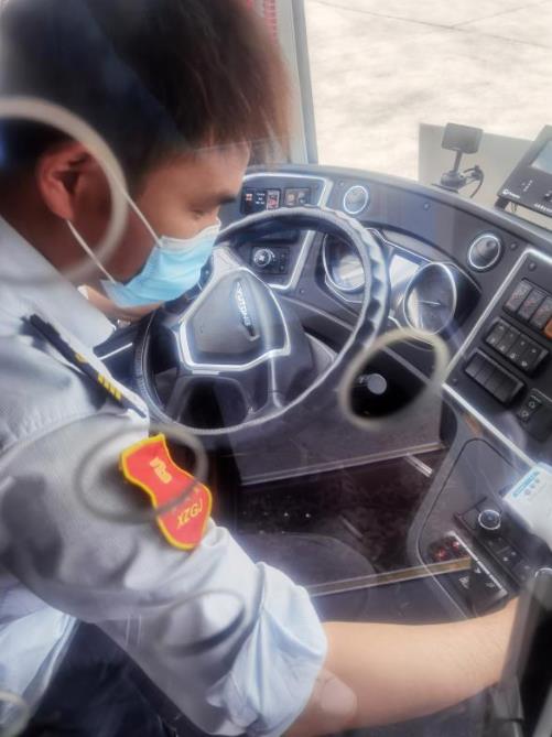 新區(qū)公司1780車(chē)駕駛員白延奇駕駛的19路線,由銅山新區(qū)總站發(fā)往徐州火車(chē)站,全程接近30.5公里,途徑居民區(qū)、學(xué)校眾多,每天要跑3趟,6個(gè)單程,不堵車(chē)的時(shí)候一個(gè)單程需要一個(gè)小時(shí)。“由于工作的特殊性,即便天氣再熱我們也不敢多喝水,早晚高峰堵車(chē)至少得1個(gè)多小時(shí)才能回到主站,只有到終點(diǎn)站才能多喝幾口水,抓緊時(shí)間上個(gè)廁所?!?/span>駕駛員白延奇這樣說(shuō)道。為了給市民乘客提供溫馨、舒適的車(chē)廂環(huán)境,每天朝陽(yáng)還未升起,白延奇就到達(dá)停車(chē)場(chǎng),檢查車(chē)輛狀況、擦拭發(fā)動(dòng)機(jī)、刷洗輪胎、打掃車(chē)輛衛(wèi)生,在確?!拔鍍粢涣痢钡耐瑫r(shí),對(duì)車(chē)廂進(jìn)行全面消毒,不一會(huì),白延奇的額頭就布滿了汗珠,身上的行業(yè)服早已濕透,緊緊地貼在皮膚上。