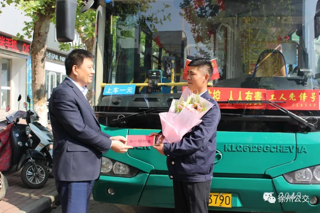 當天上午,公交集團黨委書記、董事長杜紅軍,總經(jīng)理馮陸陸,常務(wù)副總經(jīng)理蔣成彪,副總經(jīng)理丁玉華帶隊分為四組,到14路、64路、10路等終點站、車場等處開展勞模標兵走訪慰問活動,為韓杰、劉艷軍、楊鵬鵬、曹瑞國、劉委等11名市勞模,省、市五一勞動獎?wù)潞推髽I(yè)勞模送去了鮮花和節(jié)日慰問金。