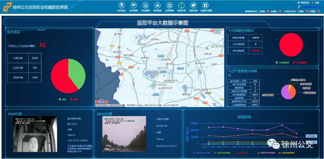 主動(dòng)安全智能防控系統(tǒng)是一套保障行車安全的自動(dòng)預(yù)警防控和監(jiān)管系統(tǒng),是以物聯(lián)網(wǎng)、云計(jì)算、大數(shù)據(jù)等技術(shù)為依托的綜合監(jiān)管平臺(tái),秉承“以人為本”的安全管理理念,運(yùn)用最新的科技信息化手段,通過(guò)主動(dòng)識(shí)別駕駛員抽煙、打電話、疲勞駕駛、前向跟車過(guò)近、頻繁變道、車輛超速等危險(xiǎn)駕駛行為,及時(shí)進(jìn)行提醒干預(yù)。同時(shí),通過(guò)車載視頻監(jiān)控的抓拍和錄像,實(shí)現(xiàn)事件取證,實(shí)現(xiàn)以疲勞駕駛干預(yù)、主動(dòng)防控、聯(lián)網(wǎng)聯(lián)控、歷史軌跡與車輛定位以及車載視頻監(jiān)控系統(tǒng)為主導(dǎo)的“五位一體”的安全防控和預(yù)報(bào)警監(jiān)管機(jī)制,極大提升了公交車輛的主動(dòng)安全防控和治安取證的總體水平。