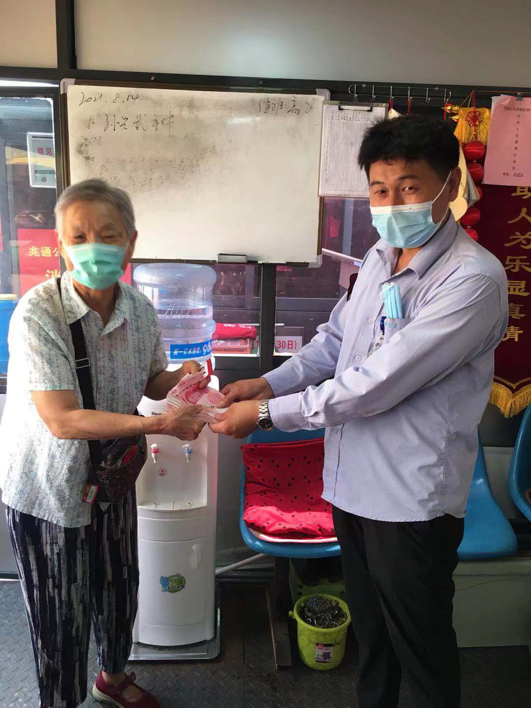 8月15日上午,一位老人手持一面印有“拾金不昧、品德高尚”的錦旗走進(jìn)了兆通公司宣武汽車站調(diào)度室,她要把這面錦旗贈與61路拾金不昧的好司機(jī)段世望師傅。