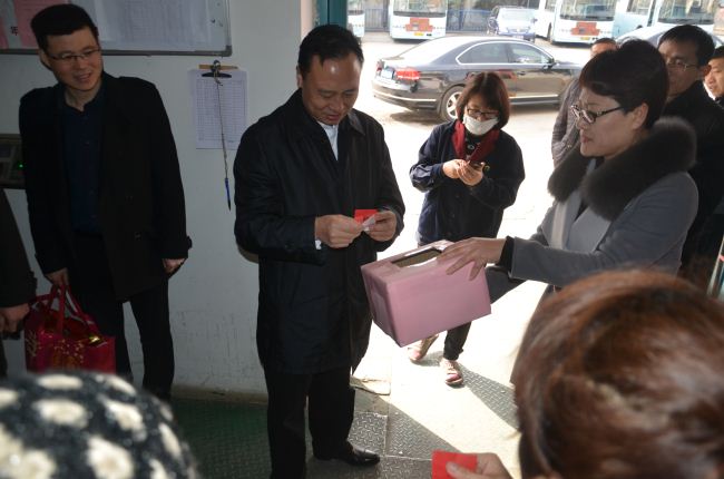 大年初一早晨,市交通運(yùn)輸局局長蔡前鋒來到公交結(jié)算中心,向公交員工拜年。蔡局長饒有興致地參加了公交結(jié)算中心舉辦的迎新春“洋洋得意”抽大獎(jiǎng)迎禮品活動(dòng)。
