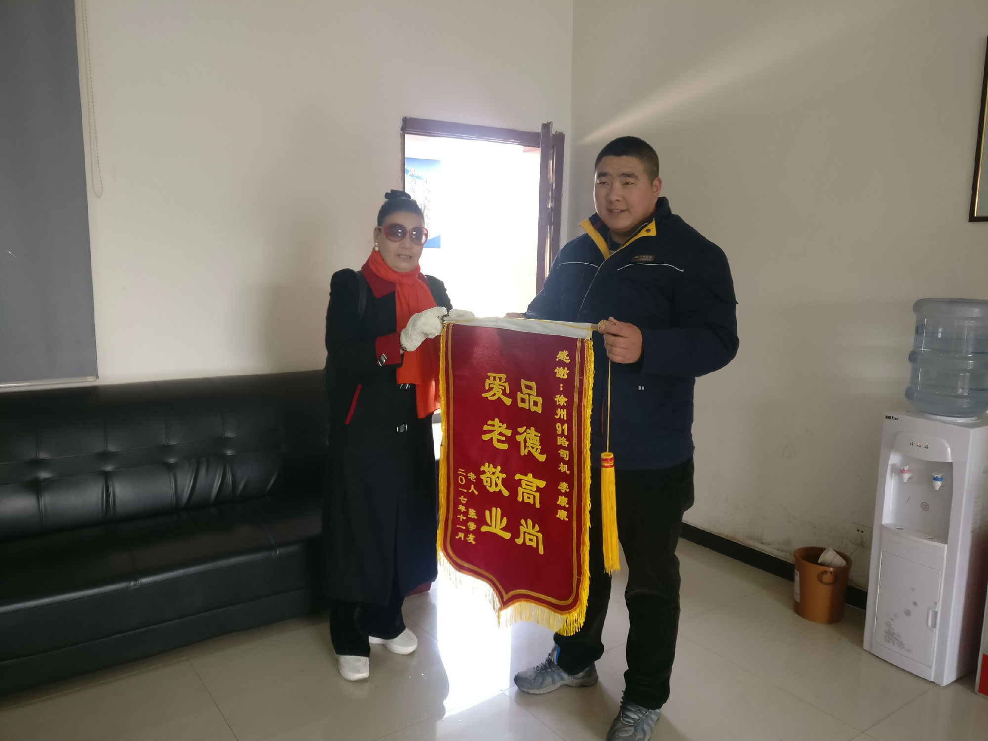 11月21日,李康康正執(zhí)行末班車的任務(wù),夜晚寒冷,車上乘客也比較少。即將到達(dá)終點(diǎn)站時,車上僅剩一位年近70的張女士,李康康看她神情慌張地看著窗外。經(jīng)詢問,得知張女士剛搬到新城區(qū)住不久,迷路了。考慮到張女士年齡較大,于是就把想送張女士回家的想法向線路長及公司做出了匯報。經(jīng)批準(zhǔn)后,他開車將張女士送回了家。事后,張女士為了表達(dá)謝意,給李康康送來一面錦旗。
